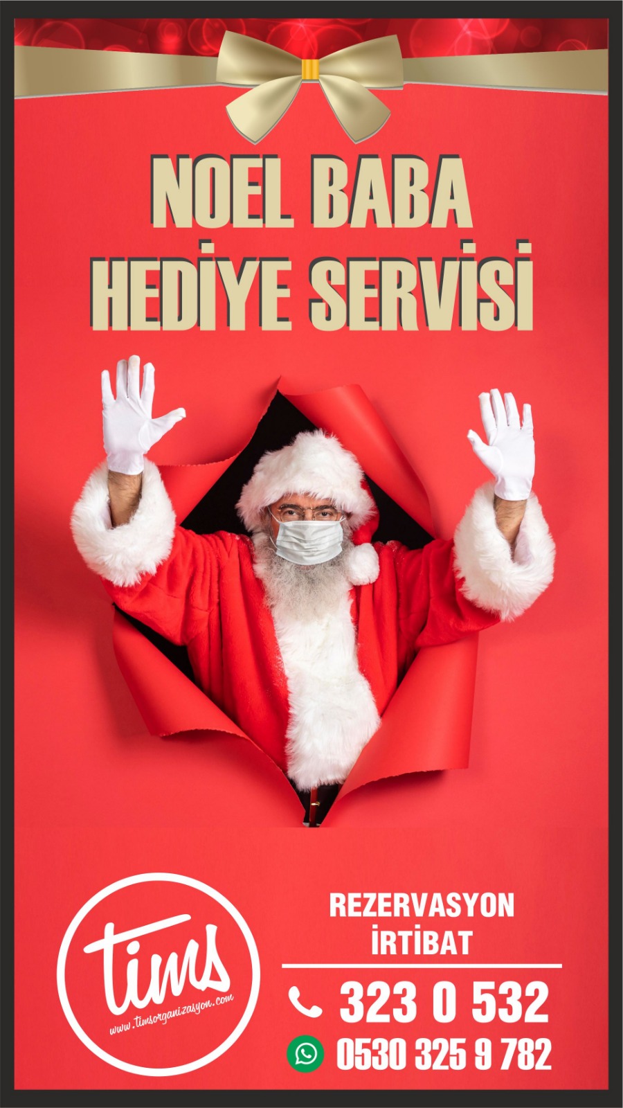 Yılbaşı haftası öncesi ve sonrasında ve yılbaşından önce, heybesinden sürpriz bir şekilde hediye dağıtan kahramanımız Noel Baba, Tims Organizasyon’un profesyonel animatörlerince can buluyor ve hediye dağıtmaya geliyor. Bembeyaz saçları ve sakallarıyla, tontiş göbeğiyle, kırmızı kukuletası ve kırmızı kostümleriyle Noel Babamız, evlerinize iş yerinize gelerek hediye ve mutluluk dağıtıyor. Noel Annelerimiz ise, Noel Babalarımıza bu mutlu günde eşlik ediyorlar.
