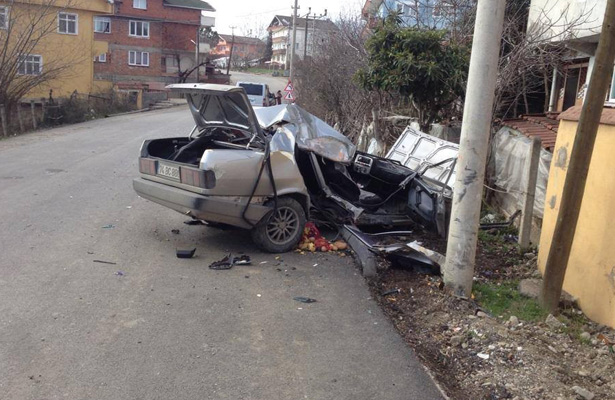 Zonguldak'ın Çaycuma ilçesinde bir kişi, tiner çekerek kaçırdığı araçla önce bir yayaya, ardında da direğe çarptı.