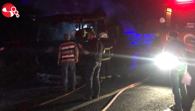 Düzce’nin Akçakoca ilçesi Tepeköy mevkiinde seyir halinde olan tır alev aldı.
