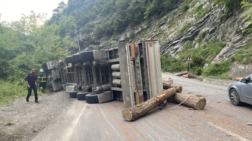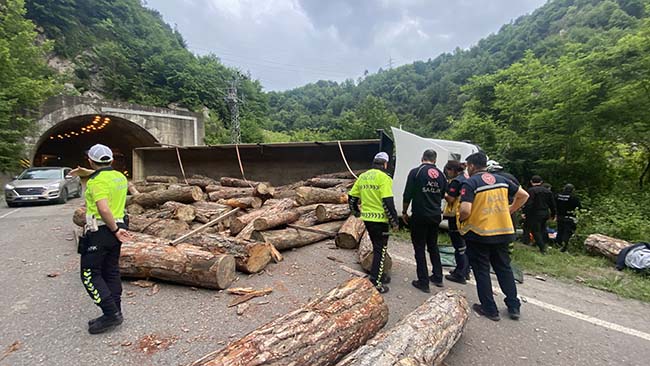 Olay, akşam saatlerinde Zonguldak-Ankara kara yolunda meydana geldi. İddiaya göre, Ahmet Bal (54) idaresindeki 54 AHS 871 plakalı tır kontrolden çıkarak yol kenarına çarptı. Çarpmanın etkisiyle dorsede bulunan odunlar yola savrulurken, tır 100 metre sürüklenerek devrildi. Çevredekilerin haber vermesi üzerine olay yerine sağlık, polis ve itfaiye ekipleri sevk edildi. Olay yerine gelen sağlık ekipleri tır sürücüsüne ilk müdahaleyi yaparak ambulansla Atatürk Devlet Hastanesine götürdü. Polis kazayla ilgili soruşturma başlatırken, kara yolları ekipleri tarafından yolda temizleme çalışması başlatıldı.