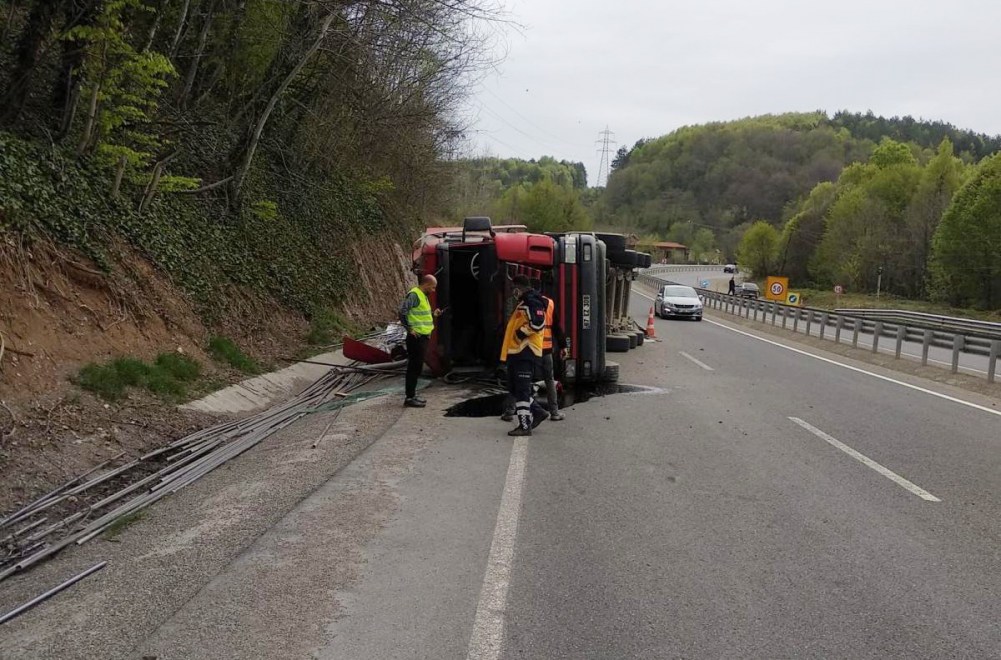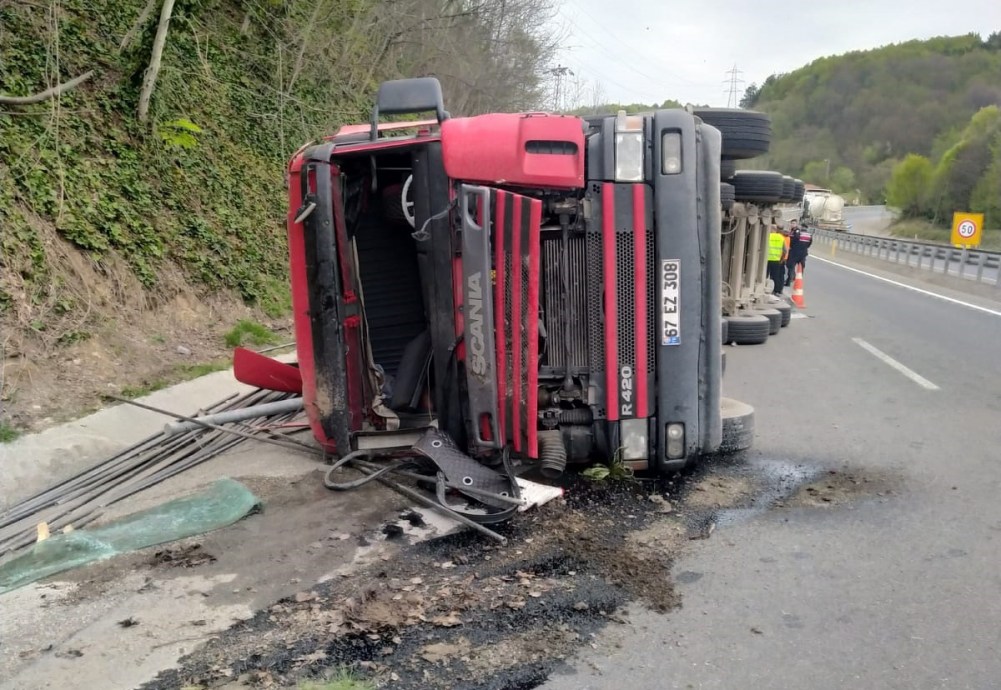 Alınan ilk bililere göre, Ereğli istikametine seyir halindeki Şenol Dilbaz (44) idaresindeki 67 EZ 308 plakalı tır, ‘Kasap Muhittin’ olarak isimlendirilen mevkide, sürücünün direksiyon hakimiyiteni kaybetmesi sonucu sonucu devrildi.