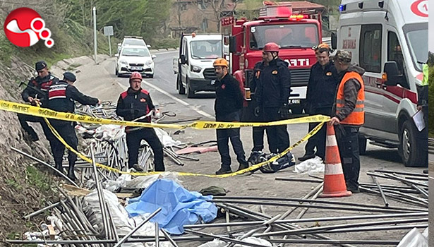 Bu sırada tıra bağlı 67 ABH 425 plakalı dorsede yüklü boru profiller yol kenarina ve yola savruldular.