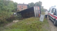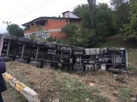 Zonguldak'ta kontrolden çıkan tır evin bahçesine girdi. Kazada tır şoförü yaralandı.
