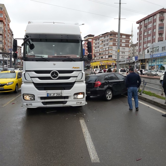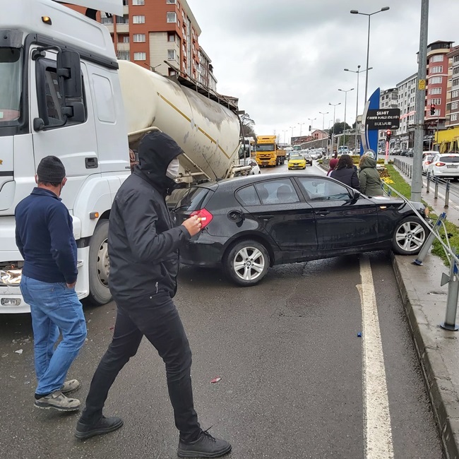 Kaza saat 13.30 sıralarında ilçeye bağlı Müftü Mahallesi Şehit Ömer Halisdemir Bulvarında meydana geldi. İddiaya göre Çarşı istikametinden Devrek Yol ayrımı istikametine giden 35 RTA 61 plakalı otomobil sürücüsü Şevkiye N. sağ şeritten orta şeride geçmek istediği sırada orta şeritten ilerleyen Yıldıray B.’nin kullandığı 34 JF 2662 çekici ve 34 BC 4376 dorse plakalı TIR ile çarpıştı. Yolda dönen otomobil refüje çıktıktan sonra çelik halatlara çarparak durabildi. Kazadan dolayı şoka giren Şevkiye N. dakikalarca ağladı. Çevredeki vatandaşların sakinleştirmeye çalıştığı kadın kocasının da gelmesi ile şoktan çıkarak kazadan dolayı TIR sürücünü suçladı. Kendisinin sinyal verdiğini ve TIR sürücüsünün kendisine bilerek çarptığı iddia eden Şevkiye N.’i eşi ve çevredeki vatandaşlar TIR sürücüsünün yanından uzaklaştırdı. Tek şeridin trafiğe kapandığı yol tutanakların tutulması ve araçların yoldan kaldırılması ile yeniden normale döndü.