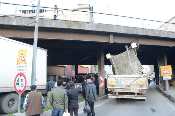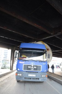 lastiklerin havasının indirilmesine rağmen sıkıştığı köprü altından