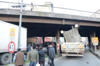 TIR KÖPRÜDE SIKIŞTI, TRAFİK FELÇ OLDU