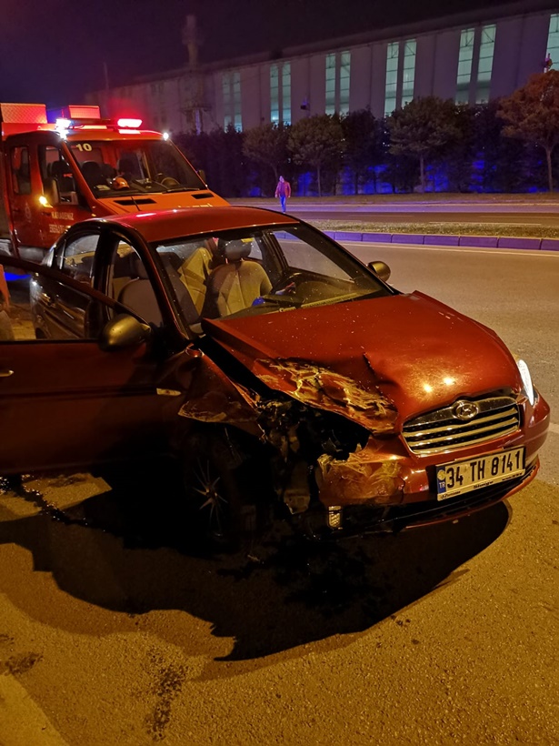 2141 plakalı otomobil çarptı. Kazada park halindeki otomobil sürücüsü Şenol Ö.