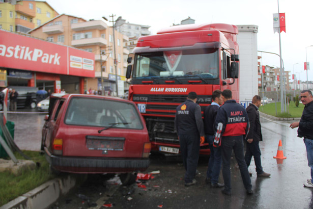 Zonguldak'ın Alaplı ilçesinde, TIR'ın otomobille çarpışması sonucu iki kişi yaralandı.