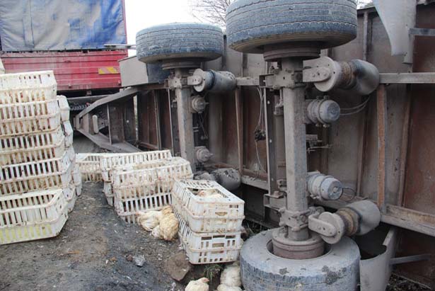 Kaza sonrası olay yerinden geçen vatandaşlar seferber olurken, yan yatan römorkun içinde kasalarda bulunan tavuklar başka bir tır'a aktarıldı. Tır sürücüsü Altun, yaptığı açıklamada , Aydınyayla Köyünden Tavuk yüklediğini ve gelirken alternatif yolunu kullandığı belirterek, "Dorsede yaklaşık 3 bin 500 tavuk vardı. Yolun bir bölümünde çökme meydana gelince arka dorse devrilmesi sonucunda yüzlerce tavuk maalesef telef oldu" diye konuştu.