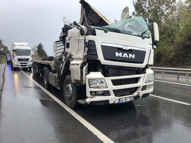sağına yanaşmaya çalışan tıra arkadan çarptı. Kazada her iki aracın sürücüsü