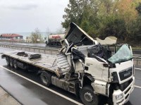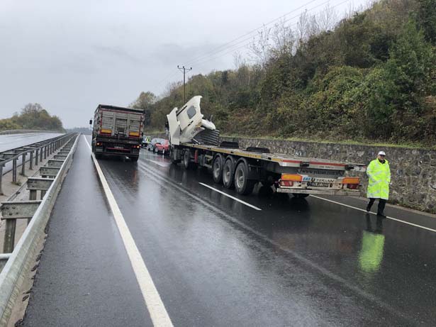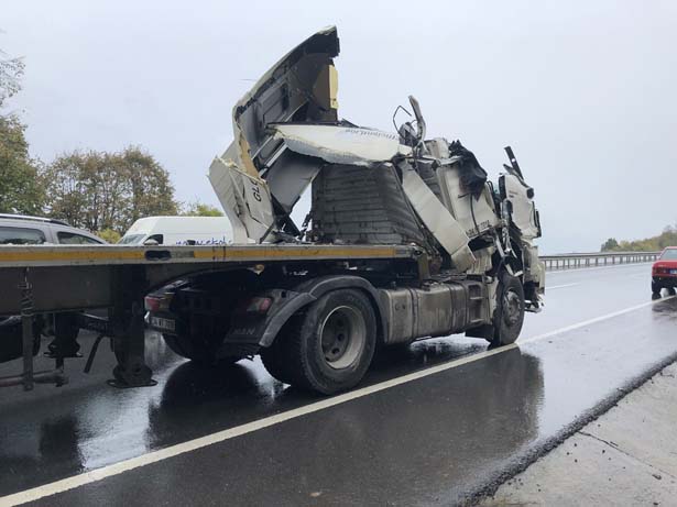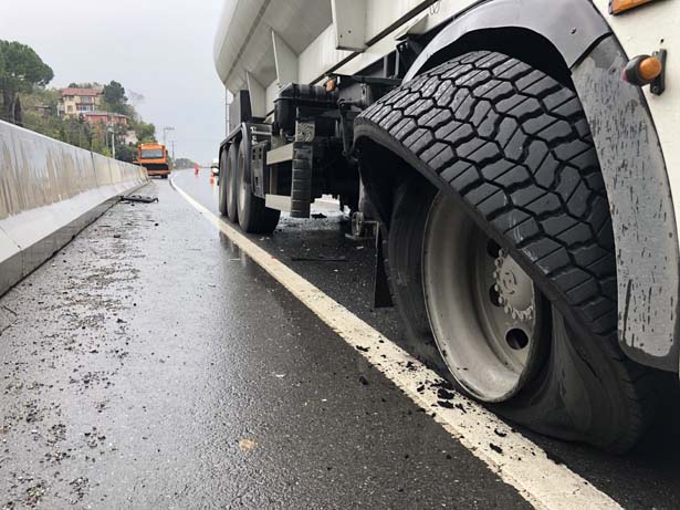 karayolunda meydana gelen kazada lastiği patlayan tıra aynı istikamette giden