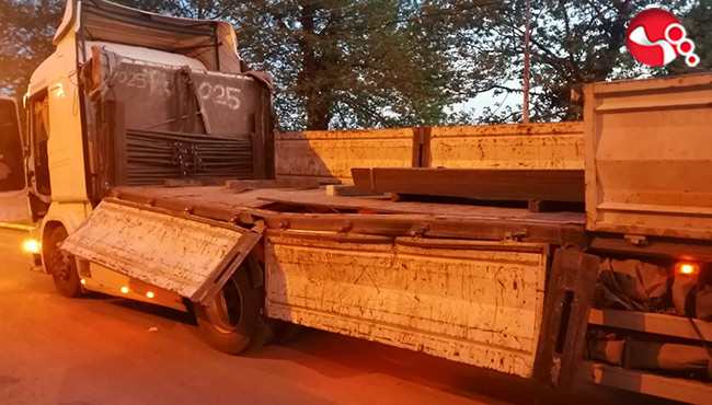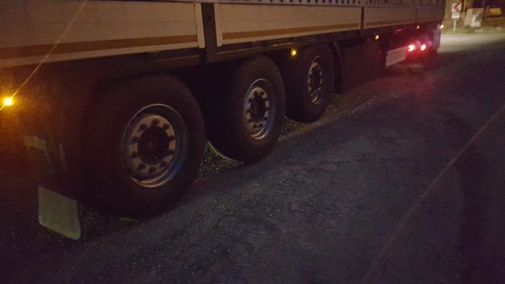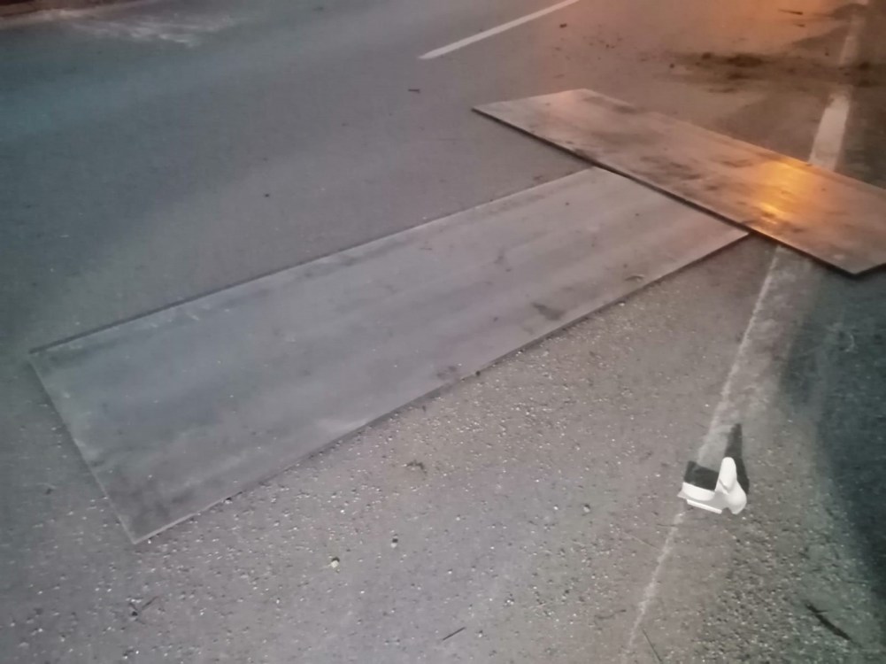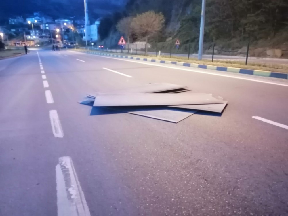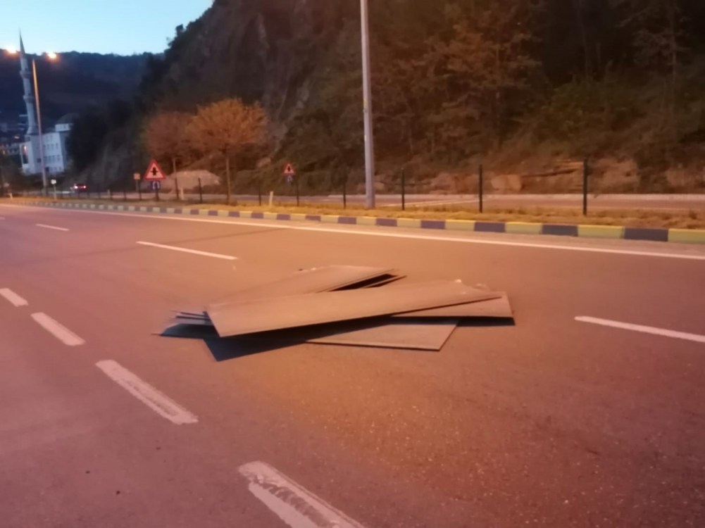 Zonguldak’ın Ereğli İlçesinde TIR üzerinde ki saclar yola savruldu. Sacları fark edemeyen başka bir TIR'ın ise lastiği patladı.