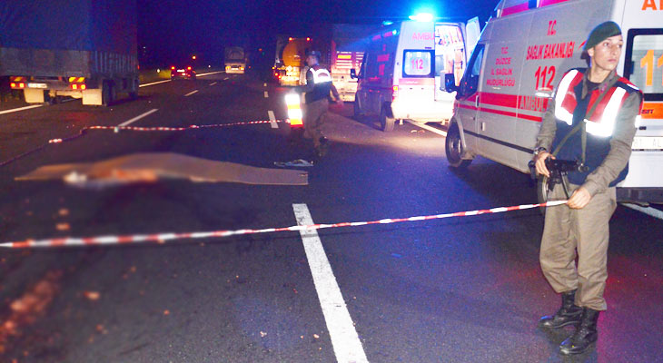 bir süre trafik tek şeritten verilirken cesedin olay yerinden kaldırılmasının