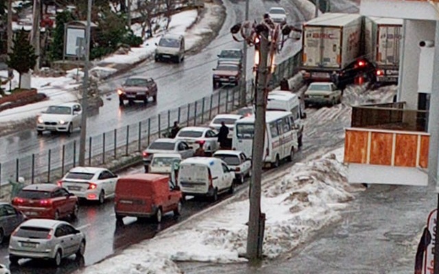 Zonguldak'ın Ereğli ilçesinde iki TIR'ın çarpışması trafikte zor anlar yaşattı.