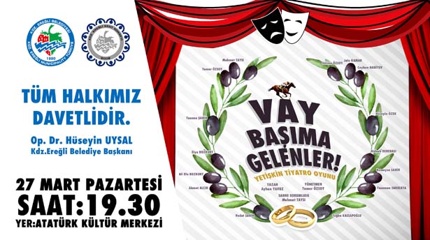 Karadeniz Ereğli Belediyesi ve Kent Konseyi işbirliği ile 27 Mart Dünya Tiyatrolar gününde 'Vay Başıma Gelenler' isimli tiyatro oyunu sahnelenecek.