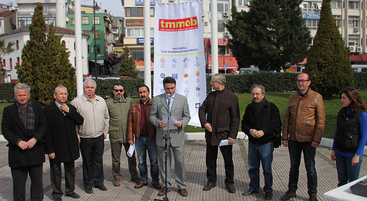 Türkiye Mühendis ve Mimar Odaları Birliği (TMMOB) Ereğli İlçe Koordinasyon Kurulu anıt önünde basın toplantısı düzenledi.