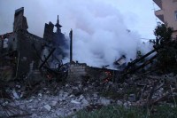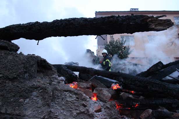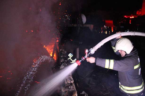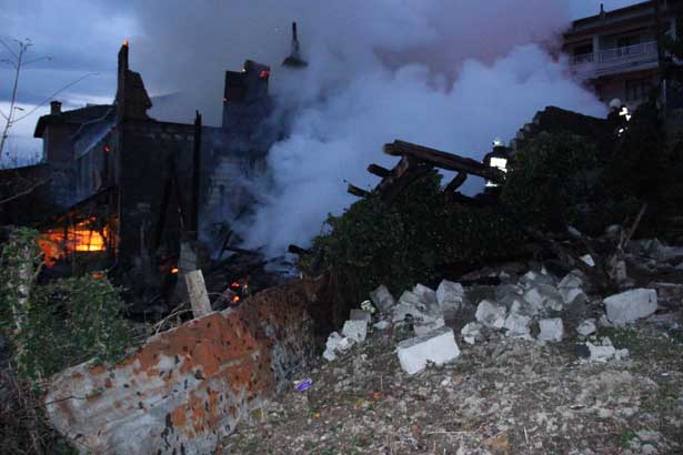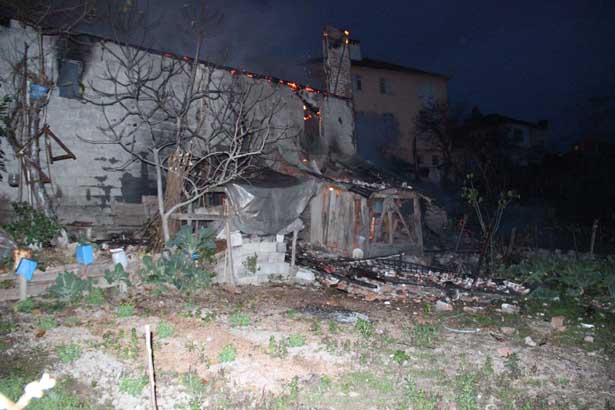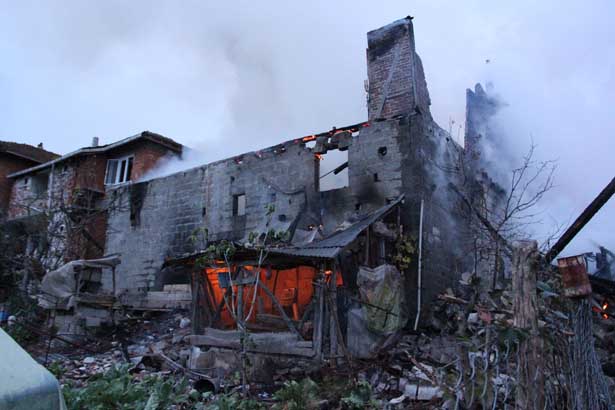 sıçradı. İki ev yangında kül olurken, ahşap evde oturan ve yangını son anda