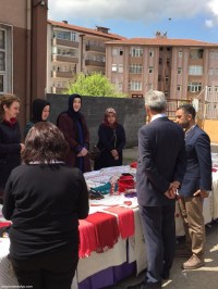 Kaymakam Madenoğlu ve beraberindekiler sergilenen eserleri tek,tek gezerek öğrencilerden bilgi aldılar.