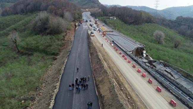 Vali Atay, yol çalışmalarıyla ilgili olarak, "Heyelan meydana gelen Akçakoca-Düzce Karayolunda, karayolları ekiplerimiz tarafından Servis yolunda asfaltlama çalışmalarımız hızlı bir şekilde devam ediyor.
