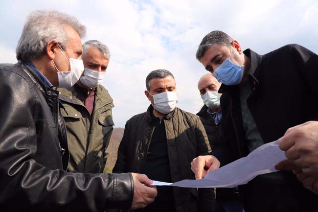 Düzce Valisi Cevdet Atay, D-655 karayolu Akçakoca-Düzce istikametinde heyelan oluşan yolda Akçakoca Kaymakamı ile beraber incelemelerde bulundu.