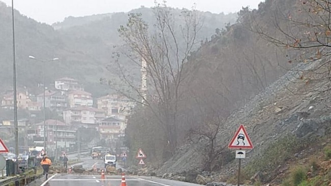 Karadeniz Ereğli ilçesinde yoğun sağanak yağış sebebiyle Alaplı-Ereğli yolunda toprak kayması yolu trafiğe kapattı.
