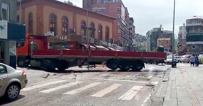 Edinilen bilgiye göre bugün öğlen saatlerinde tır sürücüsü Şemsi Denizer sokaktan Gazipaşa Caddesi istikametine dönmek isterken sıkıştı. Tırın döndüğü sırada caddede uzun araç kuyrukları oluştu. Dakikalarca tırın dönmesini bekleyen araç sürücüleri kornalarına basarak tepki gösterdi. Tırın Gazipaşa Caddesi istikametine dönmesiyle trafik normale döndü.