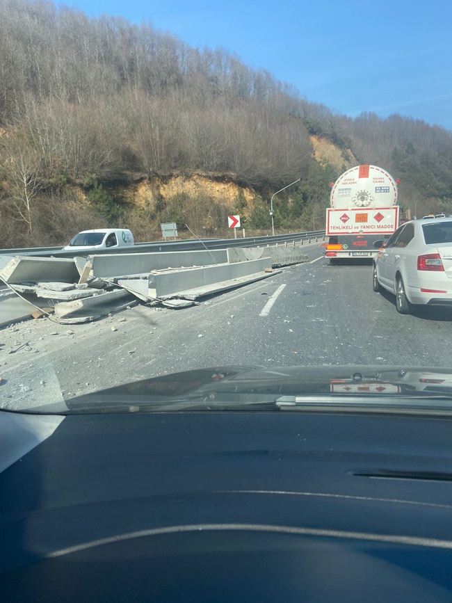 Alınan bilgiye göre, TIR'ın dorsesindeki malzemeler TIR'ın viraja hızlı girmesi sonucu kayarak yola savruldu. Olayda herhangi bir yaralanan olmazken, araçlarda zarar görmedi. Tek şeritte verilen trafik, malzemelerin kaldırılmasıyla normale döndü.