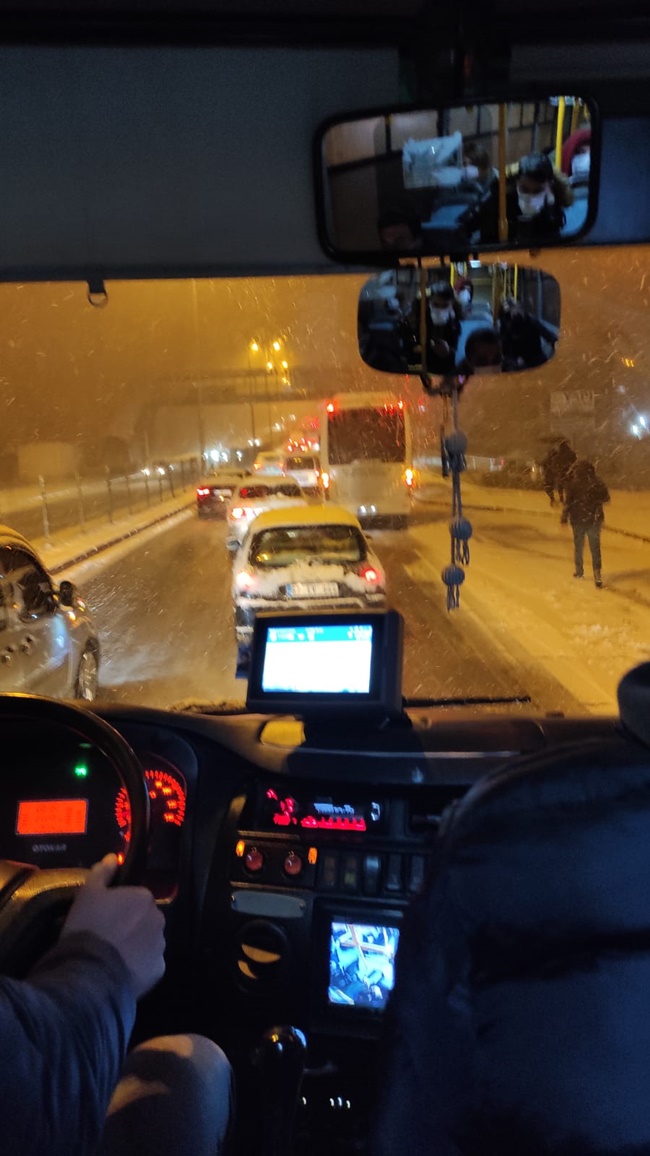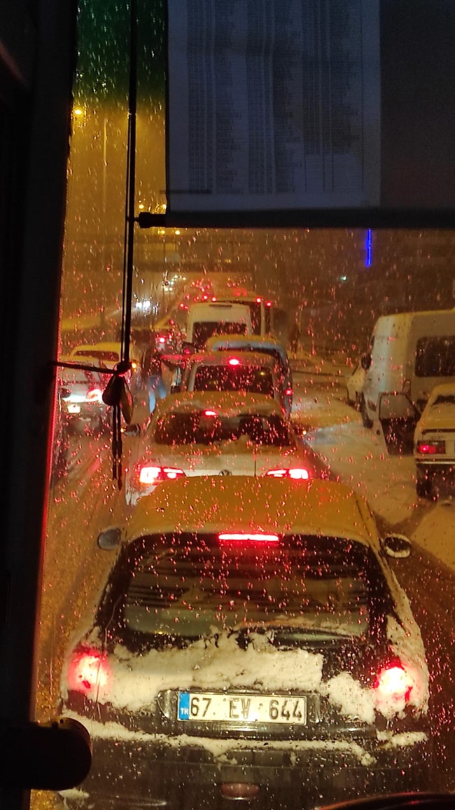 Karadeniz Ereğli'de yoğun kar yağışı sonucunda trafik durma noktasına geldi.
