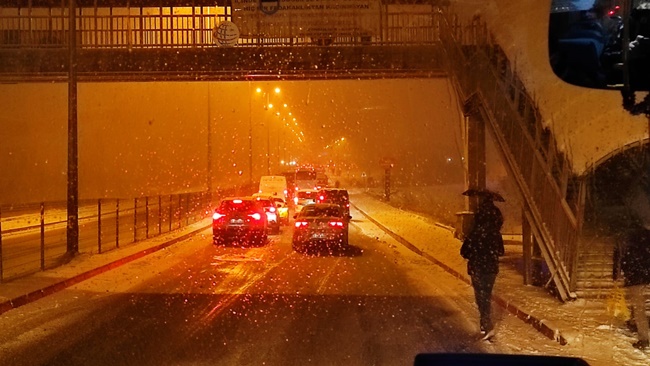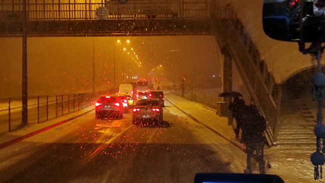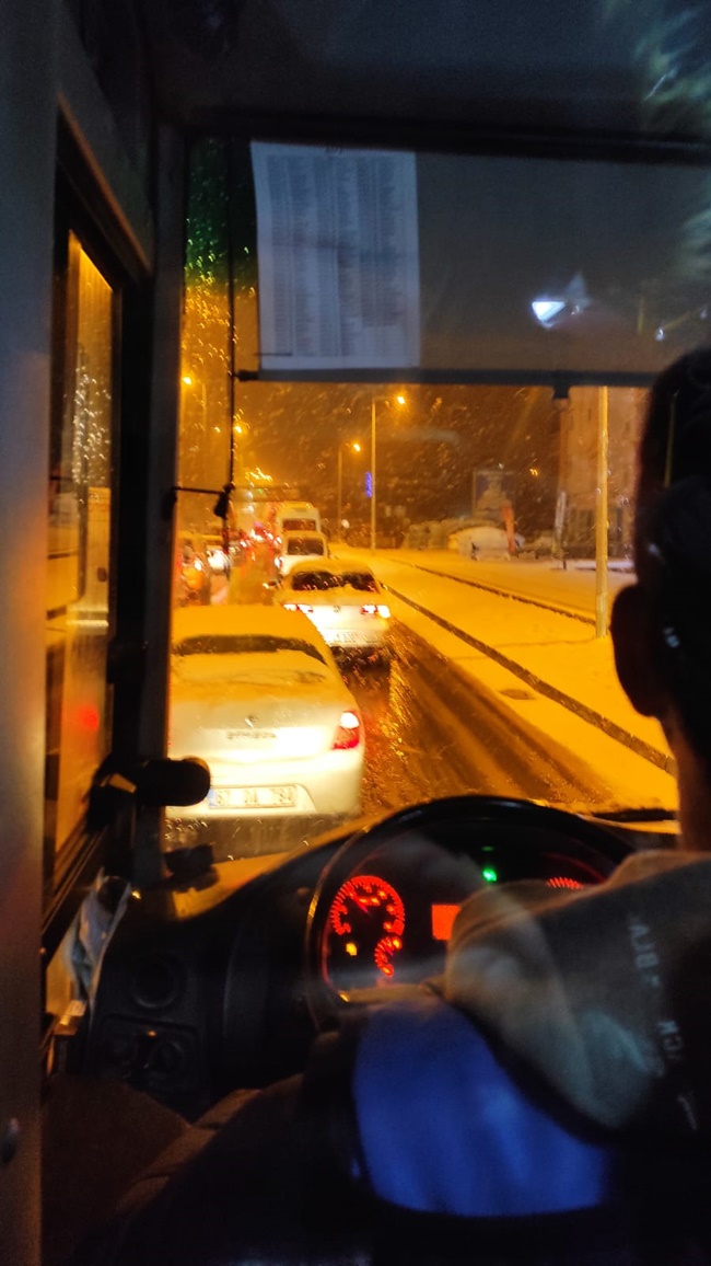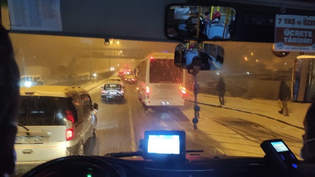 Akşam saatlerinde bastıran kar yağışı sonucunda Kepez rampasında araçlar çıkmakta güçlük çekti. Trafik durma noktasına geldi.
