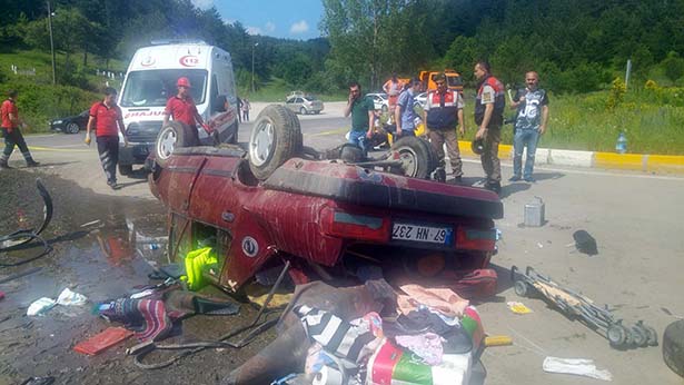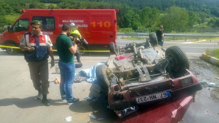 Bolu'da sürücünün direksiyon hakimiyetini kaybettiği otomobilin orta refüje çarparak takla atması sonucu 1 kişi hayatını kaybetti, biri çocuk 2 kişi de yaralandı.
