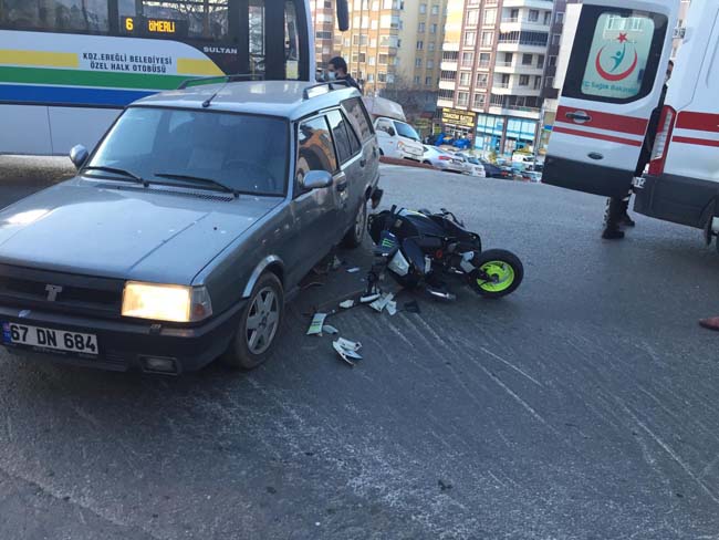 Zonguldak’ı Ereğli ilçesinde otomobil ve motosikletin çarpışmasıyla meydana gelen trafik kazasında 1 kişi yaralandı.