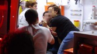 ambulansa bindirilerek hastaneye götürüldü. Sıkıştığı