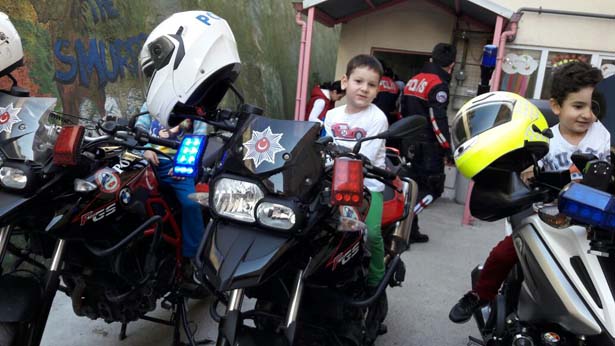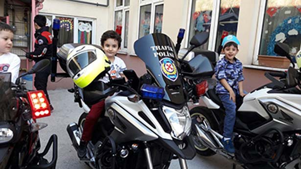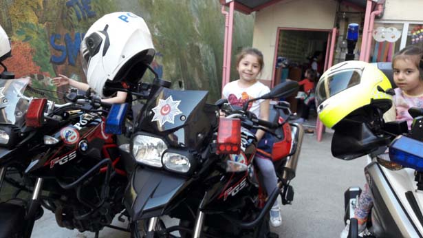 Öğrenciler de merak ettikleri konularda Polis amcalarına sorularını yöneltirken, polis amcalarının anlattıklarını da dikkatle dinlediler. Yaklaşık 25 öğrencinin katıldığı ve yarım süren etkinliğin ardından öğrenciler, Yunus ve Şahin timlerinin Motosikletlerine binerek hatıra fotoğrafı çektirdiler.