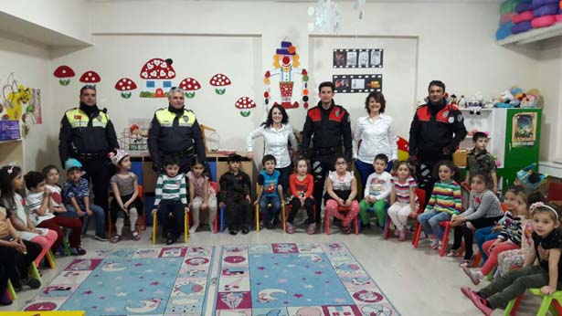 Zonguldak'ın Ereğli ilçesi İzmirlioğlu İlköğretim Okulu Ana sınıfı öğrencileri Polis amcalarından trafik kuralları ve trafikte yapılması gerekenler hakkında bilgiler aldı. Öğrencilerin etkinlikte sorduğu sorular ve trafik ile ilgili konuşmaları Polis amcaları tarafından alkış aldı.