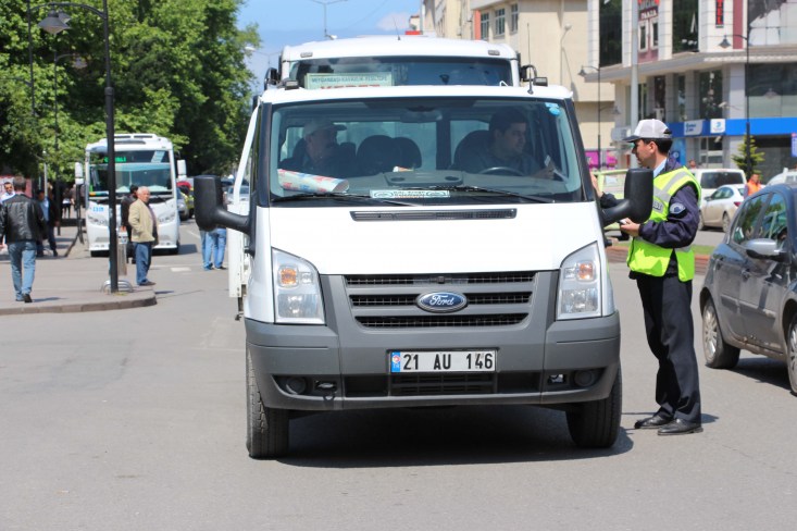 durdurarak sürücüleri emniyet kemerlerini takmaları konusunda uyarıp ve trafik