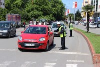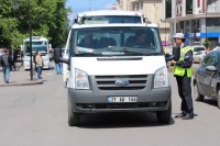 Trafik polisleri ilçe merkezindeki Devrim Bulvarı üzerinde seyir eden araçları