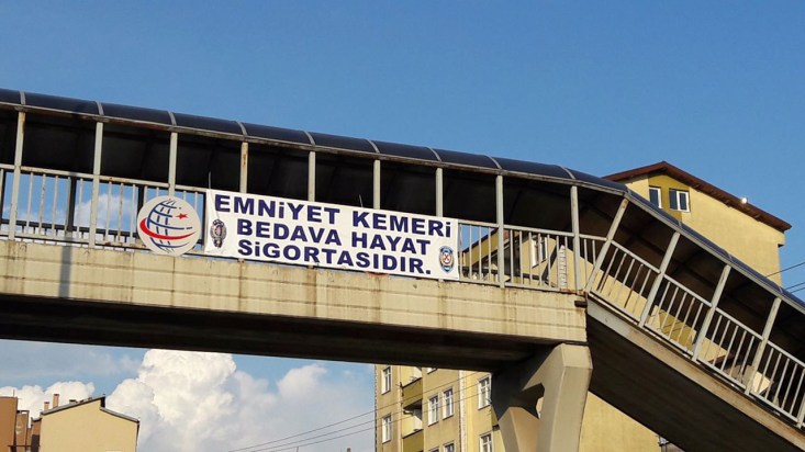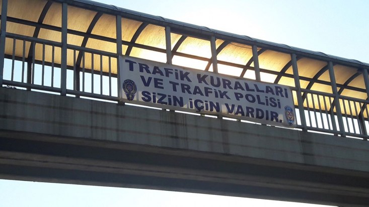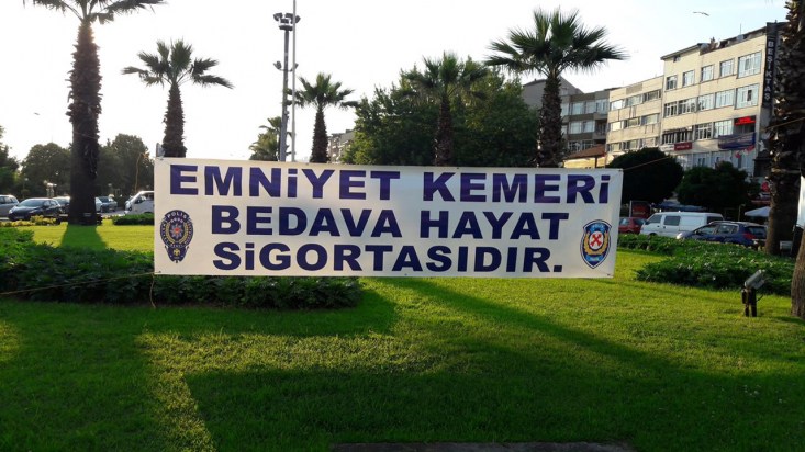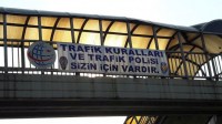 Zonguldak'ın Ereğli ilçesinde Emniyet Müdürlüğü ekipleri tarafından yaklaşan Ramazan bayramı öncesinde kazaları azaltmak ve sürücüleri uyarmak amacıyla bilgilendirici pankartlar asıldı.