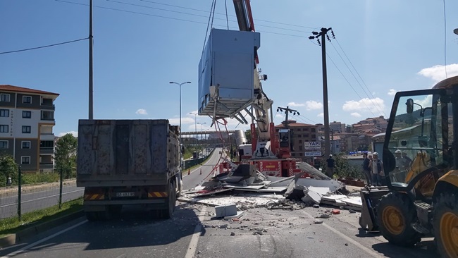 Zonguldak’ın Ereğli İlçesinde yola düşen trafo trafiğin kilitlenmesine neden oldu. Yaklaşık 1 saat süren çalışmanın ardından trafonun kaldırılması ile yol yeniden trafiğe açıldı.