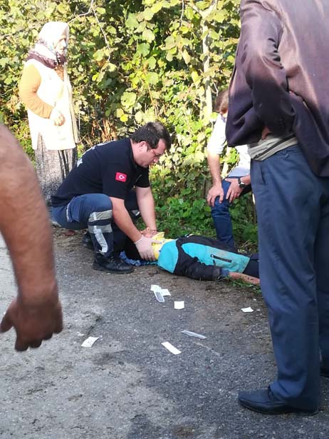 Düzce Merkeze bağlı Kurtsuyu köyünde traktör römorkunun devrilmesi sonucu 5 fındık işçisi yaralandı