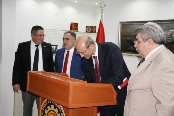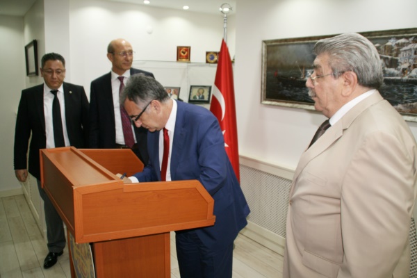 Erdemir Yönetim Kurulu Başkanı Ömer Baktır ve Sedat Orhan, daha sonra TSO Şeref Defteri'ne duygularını yazdı.
