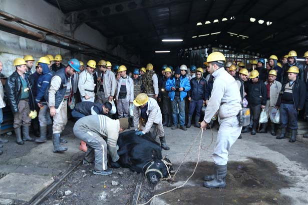 Kurban kesim törenine Genel Maden İşçileri Sendikası (GMİS) Genel Başkan