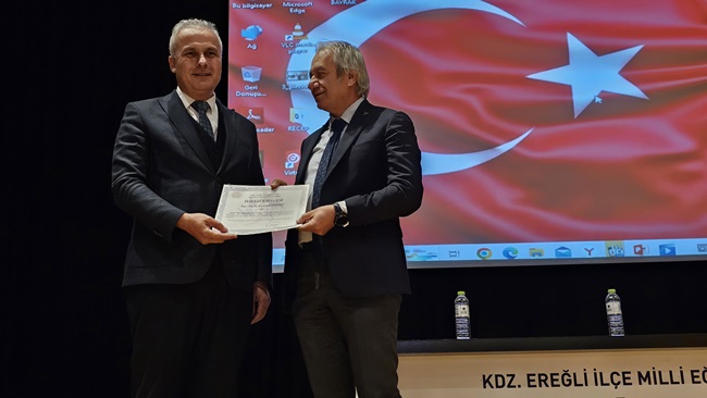 Tören saygı duruşu ve İstiklal Marşı’nın okunmasıyla başladı. Günün anlam ve önemine ilişkin konuşmayı Kdz. Ereğli İlçe Milli Eğitim Müdürü Harun Akgül yaptı.