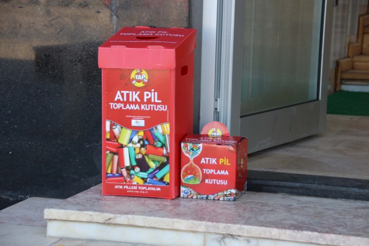 Piller çöpe atıldığı zaman yapılarındaki tehlikeli kimyasal maddelerin açığa çıkarak toprağa ve yer altı sularına karışmasından dolayı gelecek nesiller için büyük tehlike arz edan miadı dolmuş pilleri toplama çalışması kapsamında Temizlik İşleri Müdürlüğü ekipleri, ilçede bulunun tüm camilere gün içinde Atık Pil Toplama Kutuları yerleştirdi.