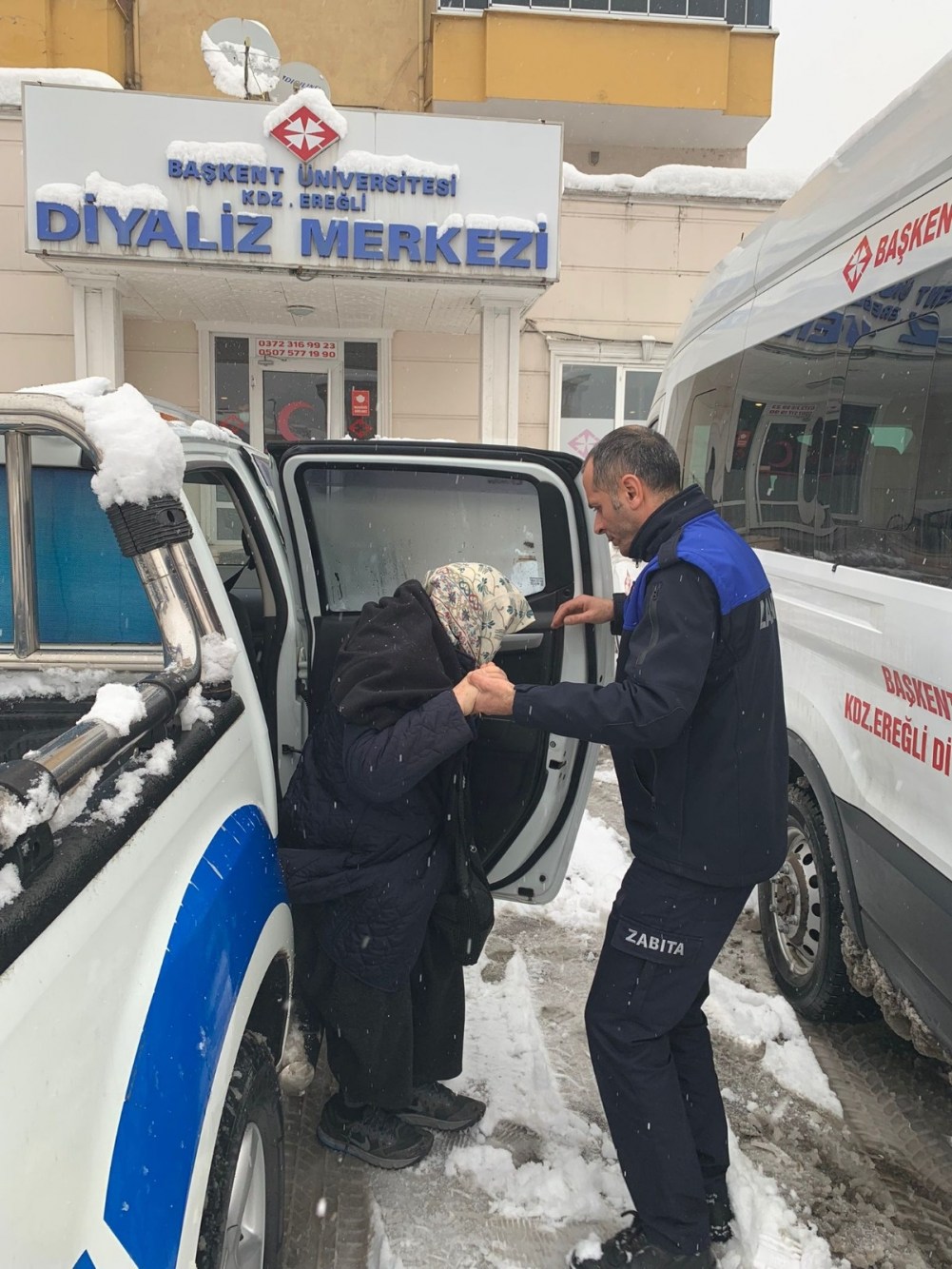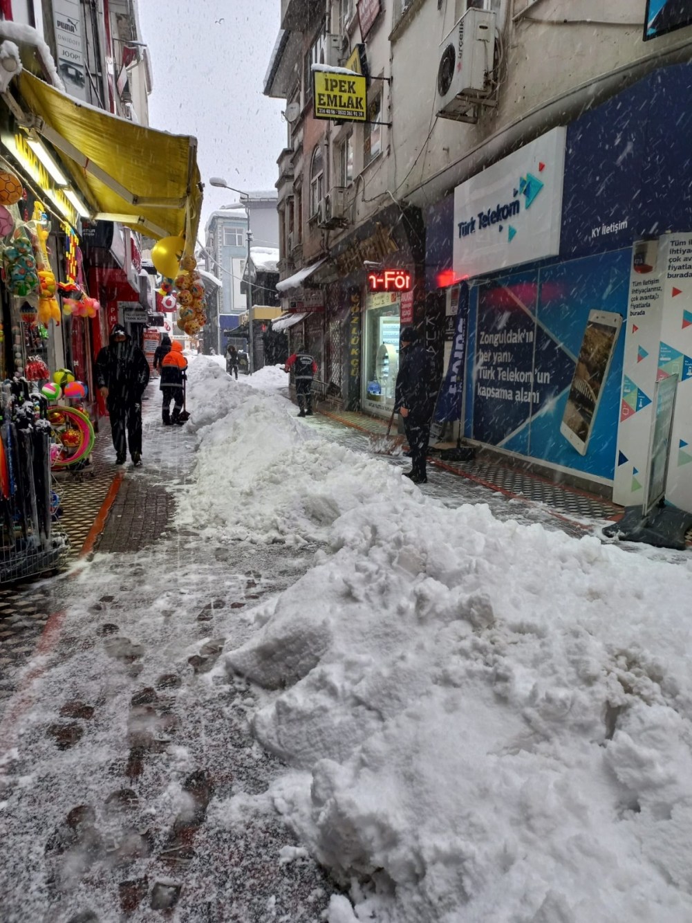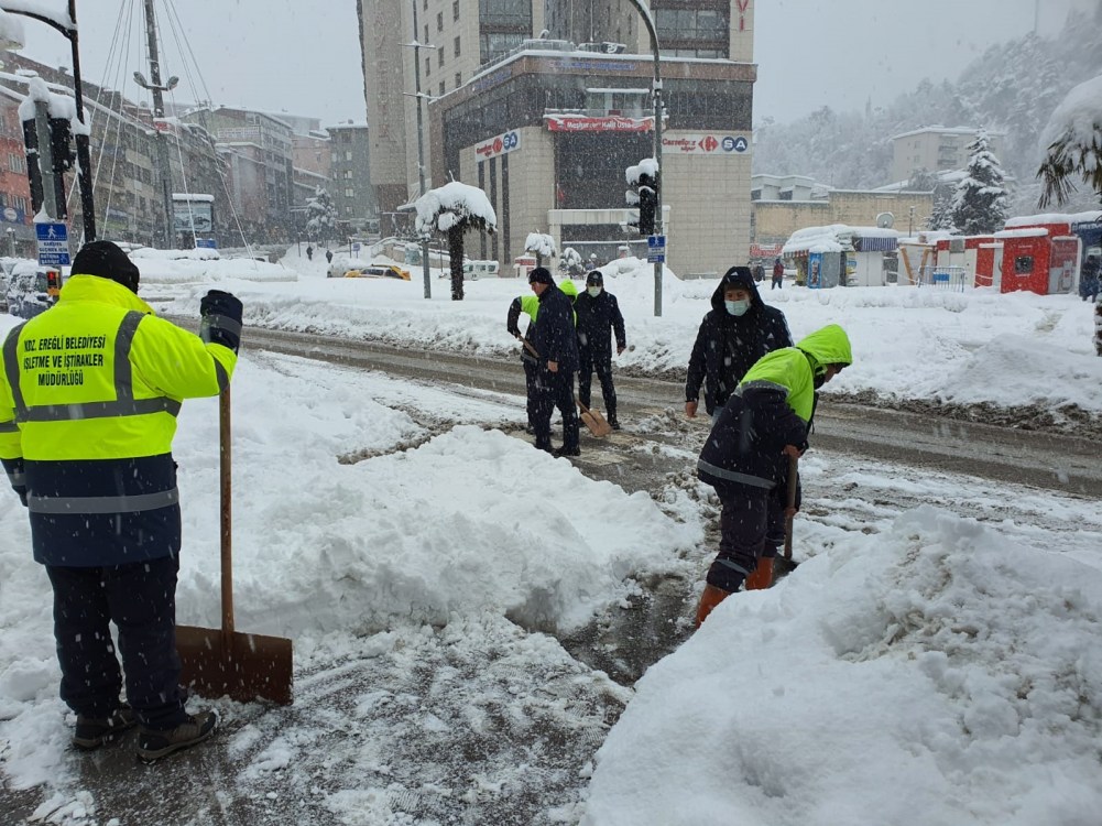 Kdz. Ereğli önceki geceden itibaren etkisini gösteren kar yağışı etkisini gösteriyor.
