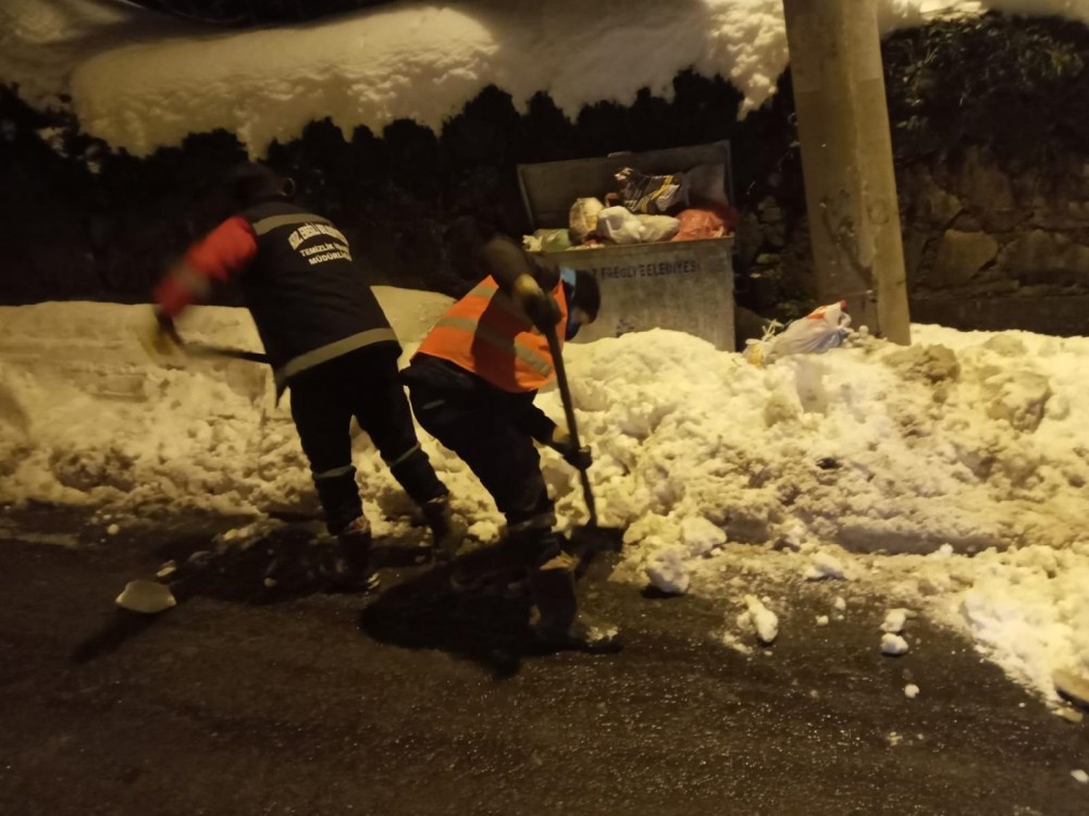 “Akşam saatlerinden itibaren kar yağışı yeniden yoğunlaştı. Tüm ekiplerimizle sahadayız. Çalışmalar özveriyle devam ediyor…” denildi