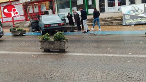 Beton saksılara çarparak durabildi