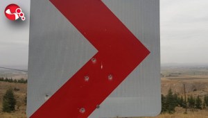 Trafik Levhasını atış poligonuna çevirdiler