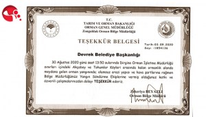 Devrek Belediyesi'ne teşekkür belgesi