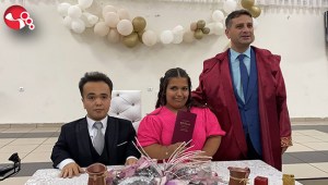 Zonguldak’ta kemik büyümesi bozukluğu hastası Alimen Gülpınar ile İrem Şükran Gülpınar çifti nikah kıyarak dünyaevine girdi.