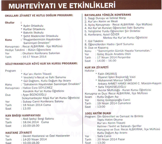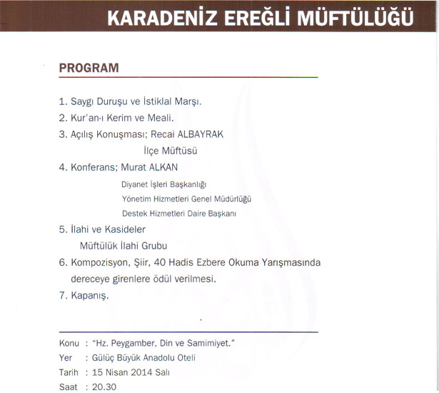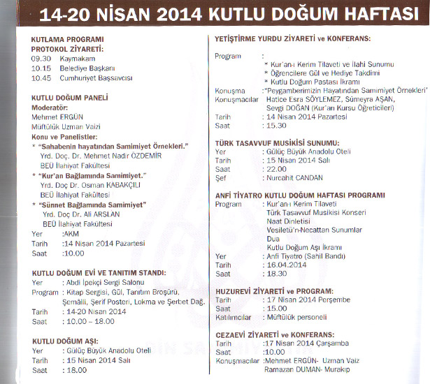 14-20 Nisan tarihleri arasında kutlanan Kutlu Doğum Haftasının bu yılda birbirinden farklı çeşitli etkinliklerle kutlanacağı öğrenildi. Karadeniz Ereğli İlçe Müftüsü Recai Albayrak, 14-20 Nisan tarihleri arasında kutlanacak olan Kutlu Doğum Haftası'nın "Hz. Peygamber, Din ve Samimiyet" sloganı ile kutlanacağının altını çizdi.